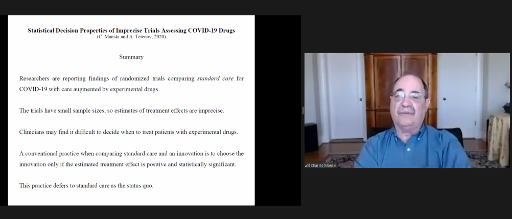 来自麻省理工学院的Daron Acemoglu教授与西北大学的Charles F. Manski教授受邀担任本次会议的主讲嘉宾,分别进行题为“A Multi-risk SIR Model with Optimally Targeted Lockdown”、“Coping with COVID Uncertainties”的主题演讲。“大咖”云集、高含金量的学术会议吸引了近200人慕名参会,参会者围绕当前国内外经济发展问题的最新研究成果进行了展示汇报。